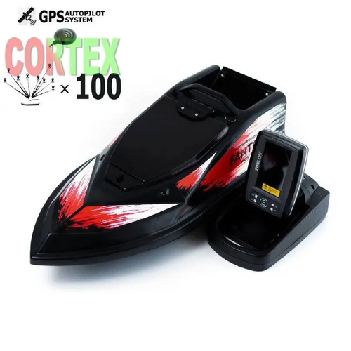 Кораблик для прикормки Фантом Модерн з ехолотом Toslon520 та GPS автопілотом (Maxi Cortex) Чорний з червоними наклейками
